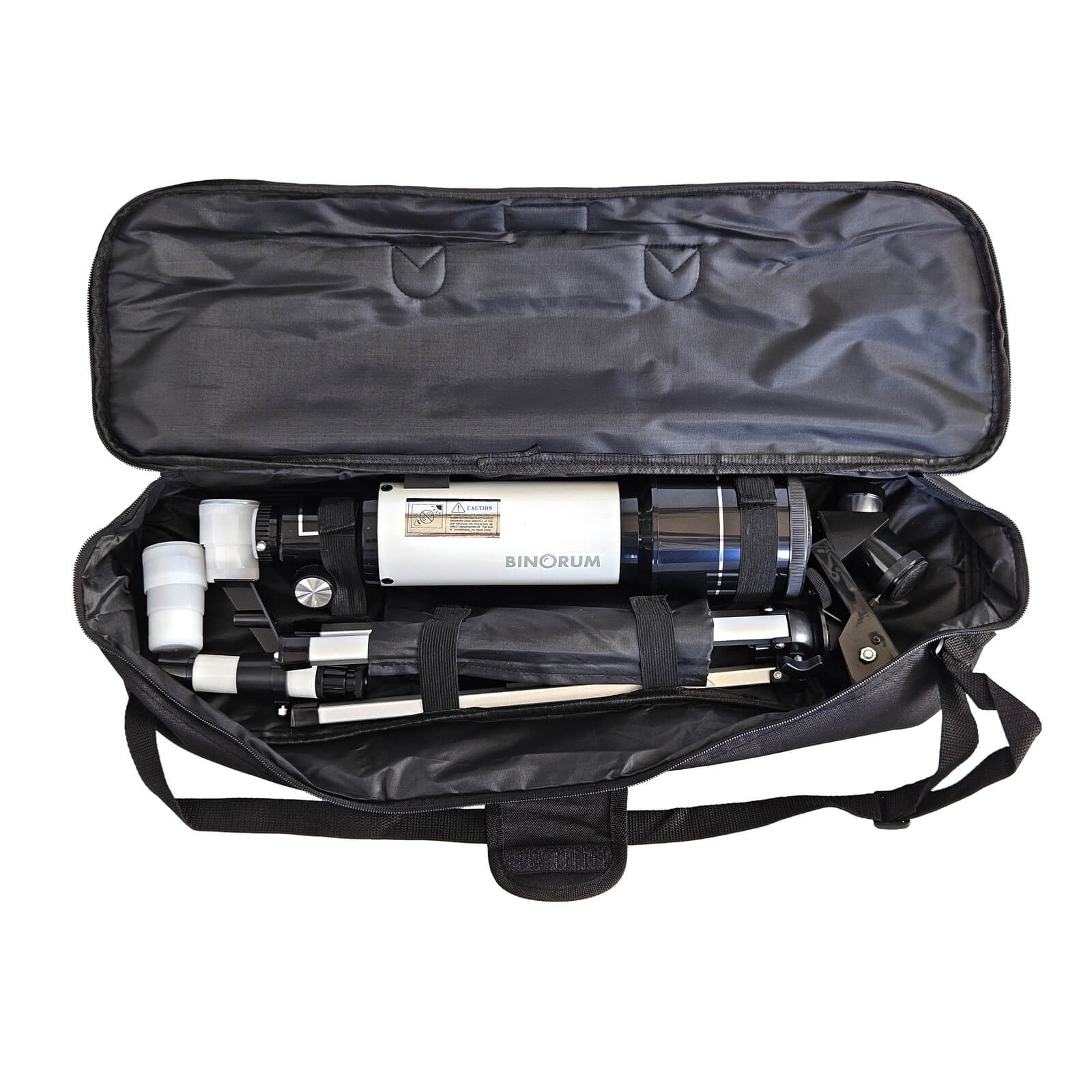 Taška na prenášanie ďalekohľadu Binorum Traveler vrátane statívu a príslušenstva. Vhodná na prenášanie podobných menších ďalekohľadov 70/400 alebo 70/350.