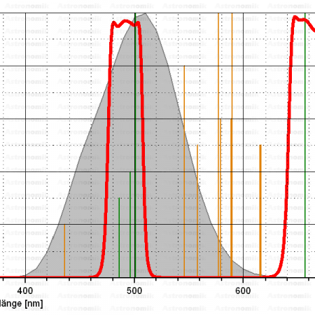 Filter Astronomik UHC (UHC - Ultra High Contrast, Extrémne vysoký kontrast) takmer dokonale prepúšťa spektrum O-III a H-beta žiarenie. Druhá časť pre H-alfa nie je úplne určená pre vizuálne pozorovanie, ale má zmysel pri použití filtra s elektronickým zariadením - fotoaparátom alebo videokamerou. Všetko rušiace rozptýlené svetlo z iných zdrojov a vlnových dĺžok, vrátane miestneho svetelného znečistenia, je spoľahlivo odfiltrované. S týmto silným blokovaním pozadia sa stane viditeľným neočakávané bohatstvo detailov plynných a planetárnych hmlovín.
