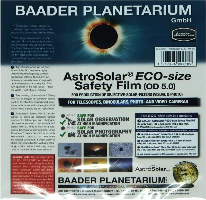 Slnečný filter (fólia) Baader Planetarium AstroSolar 140x155mm ND 5.0 Vizual 18 €