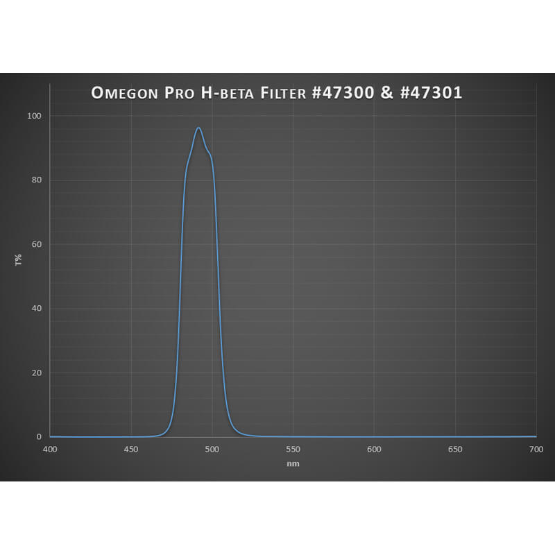 Tento filter je navrhnutý tak, aby prepúšťal svetlo výhradne v oblasti emisie vodíka na vlnovej dĺžke 486 nm. Vďaka šírke pásma 25 nm je mimoriadne vhodný na vizuálne pozorovanie - dostatočne úzke pásmo na potlačenie svetelného znečistenia, no stále dostatočne široké na to, aby ste mohli pohodlne sledovať objekty okom. Filter je kompatibilný so štandardným závitom 1.25″ a môžete ho použiť s väčšinou okulárov a ďalekohľadov dostupných na trhu.