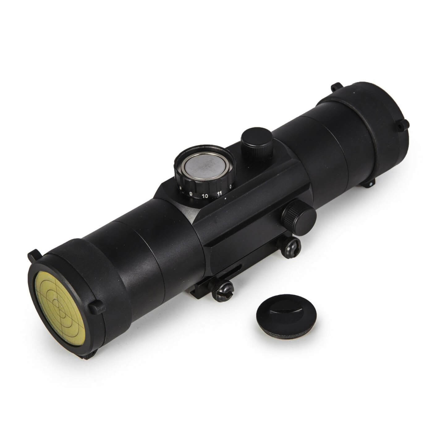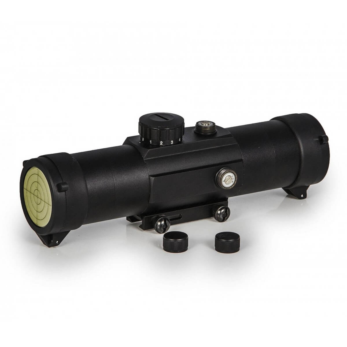 Priehľadový hľadáčik so zväčšením 1x, premietajúci na priehľad červený bod z LED zdroja. Spojnica oko - červený bod - cieľ zaisťuje správne zameranie hlavného ďalekohľadu. Nastaviteľný v oboch osiach, plynule regulovateľný jas, zdroj batérie CR 2032. Priemer tienidla 40mm, rosničky na oba konce hľadáčika. Inovovaná verzia, čierne prevedenie.