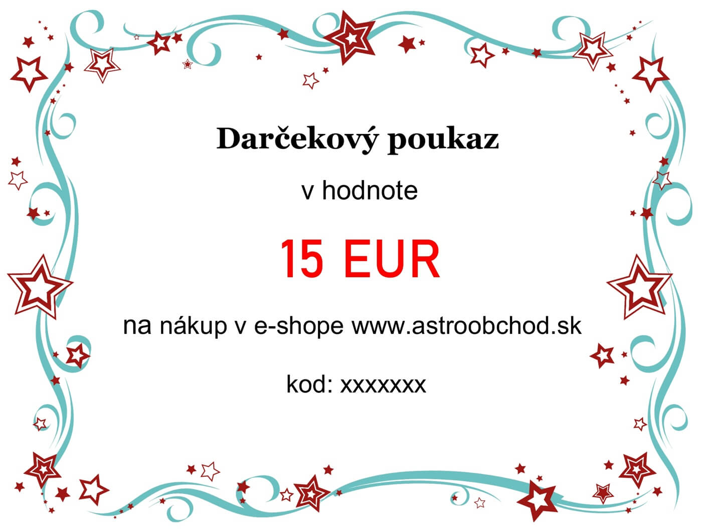 Darčekový poukaz v hodnote 15 € na nákup v e-shope www.astroobchod.sk.