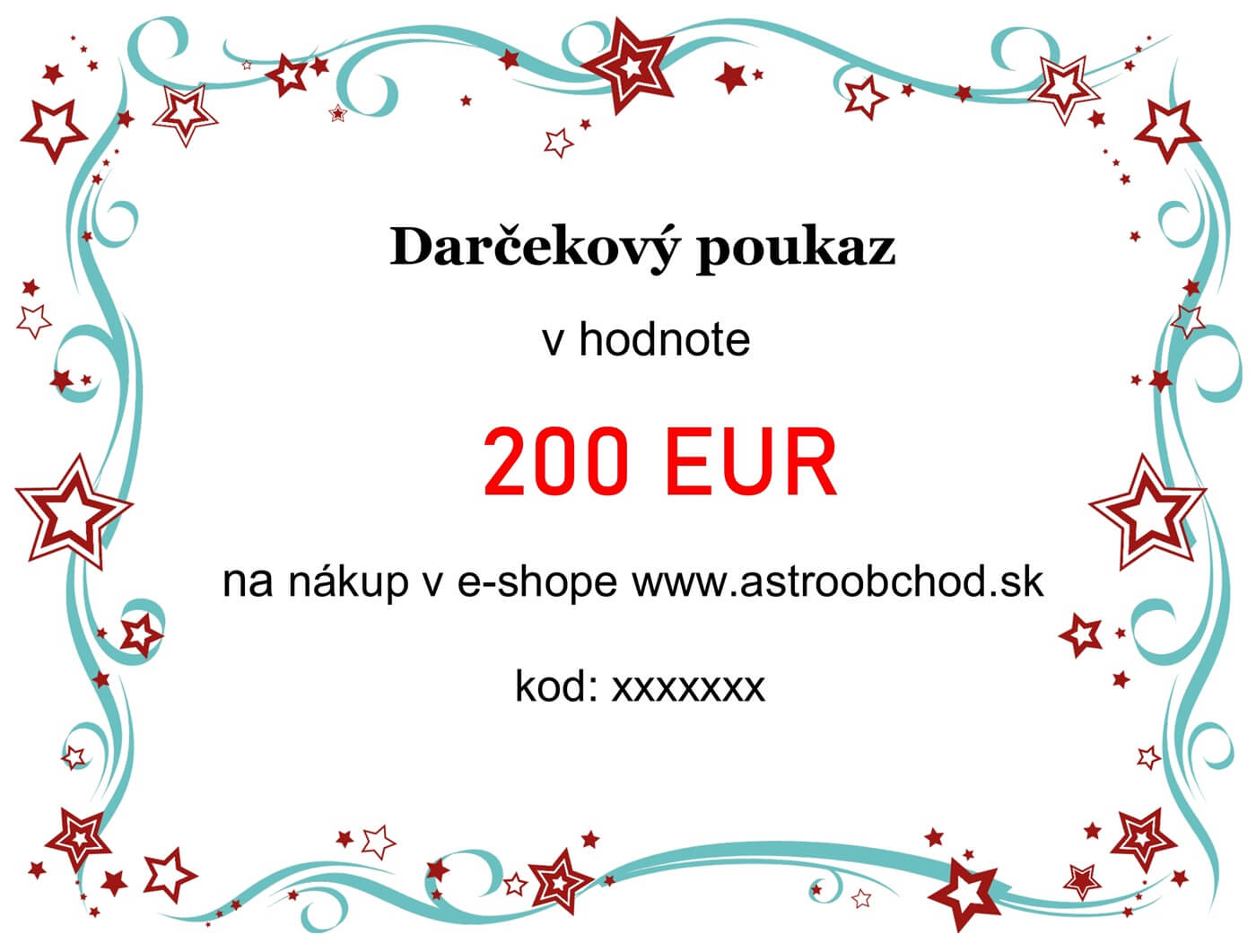 Darčekový poukaz v hodnote 200 € na nákup v e-shope www.astroobchod.sk.