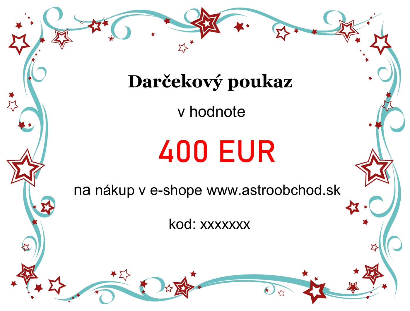 Darčekový poukaz v hodnote 400 € na nákup v e-shope www.astroobchod.sk.