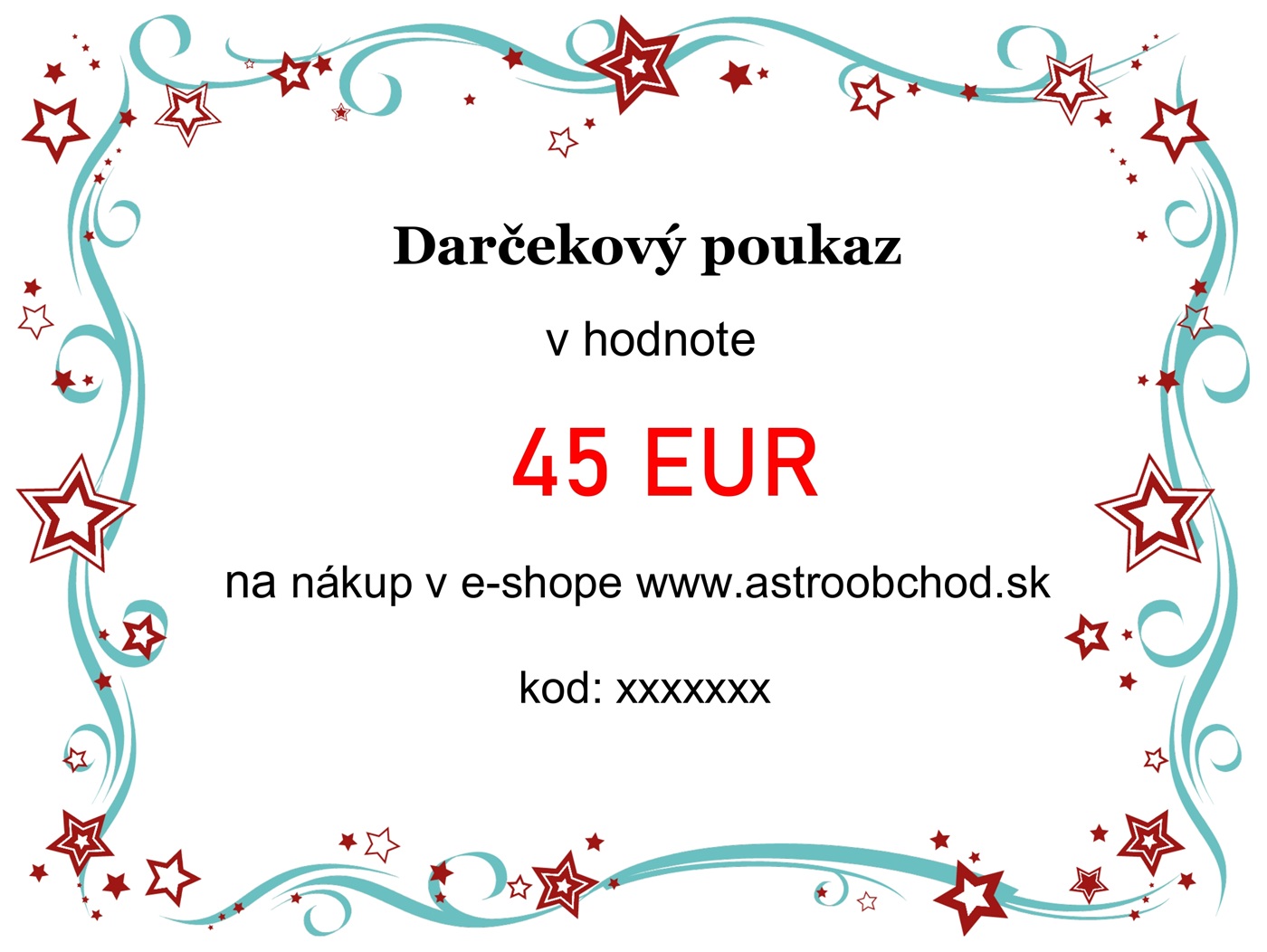 Darčekový poukaz v hodnote 45 € na nákup v e-shope www.astroobchod.sk.