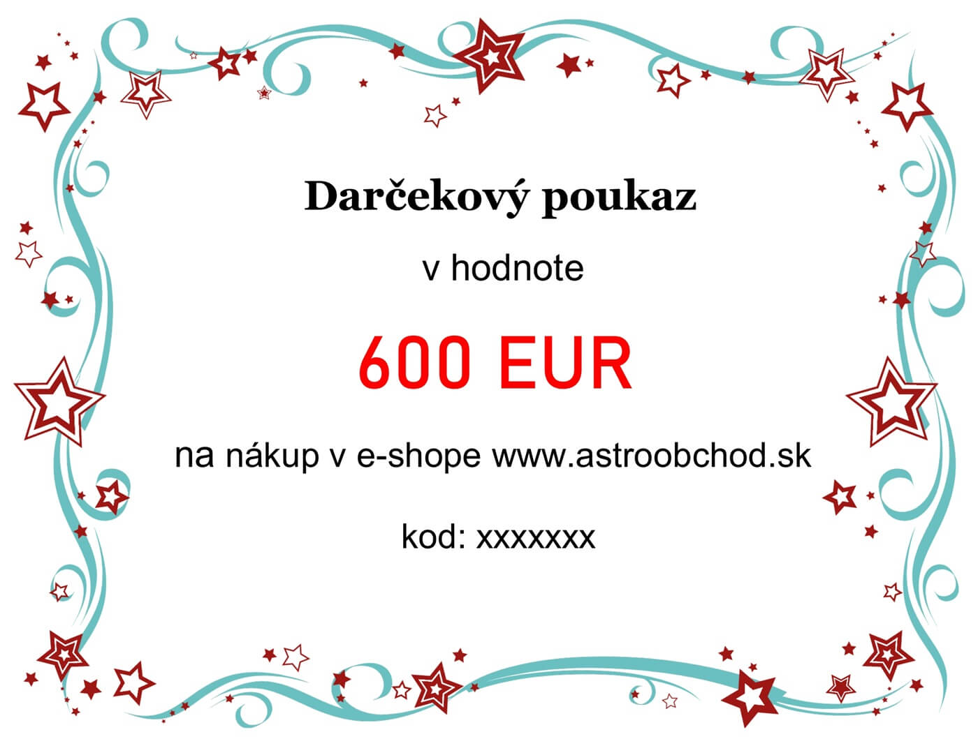 Darčekový poukaz v hodnote 600 € na nákup v e-shope www.astroobchod.sk.