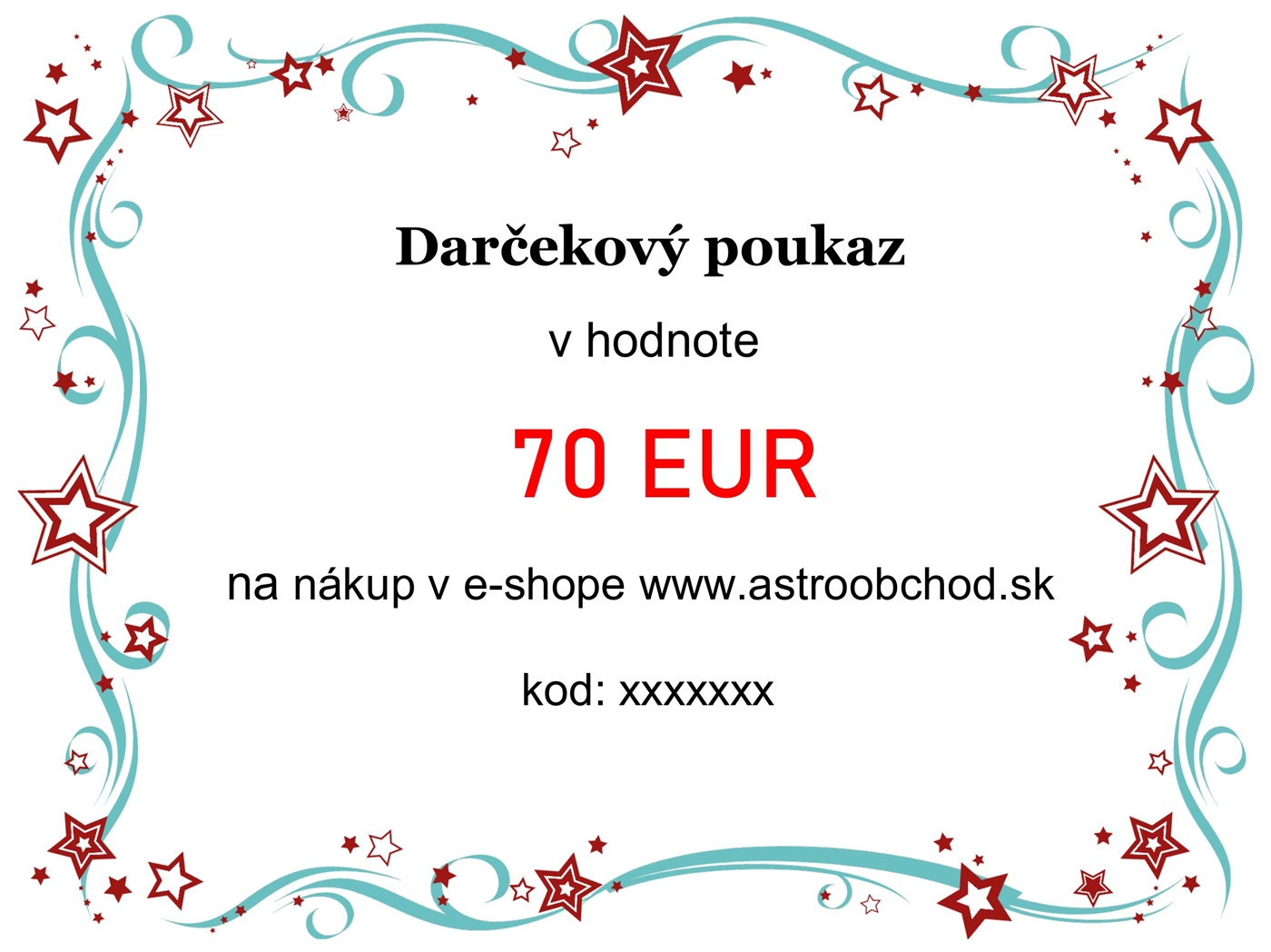 Darčekový poukaz v hodnote 70 € na nákup v e-shope www.astroobchod.sk.