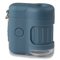 Ultra kompaktný a ľahký vreckový mikroskop, zmestí sa takmer do každého vrecka. Pomocou krúžku na kľúče stačí jednoducho pripevniť na batoh alebo tašku. Zväčšenie: 20-násobné, LED a UV osvetlenie, napájanie pomocou 3 batérií (LR 44).