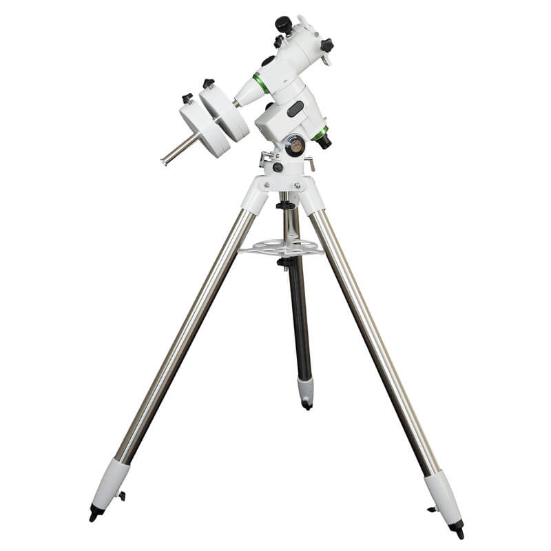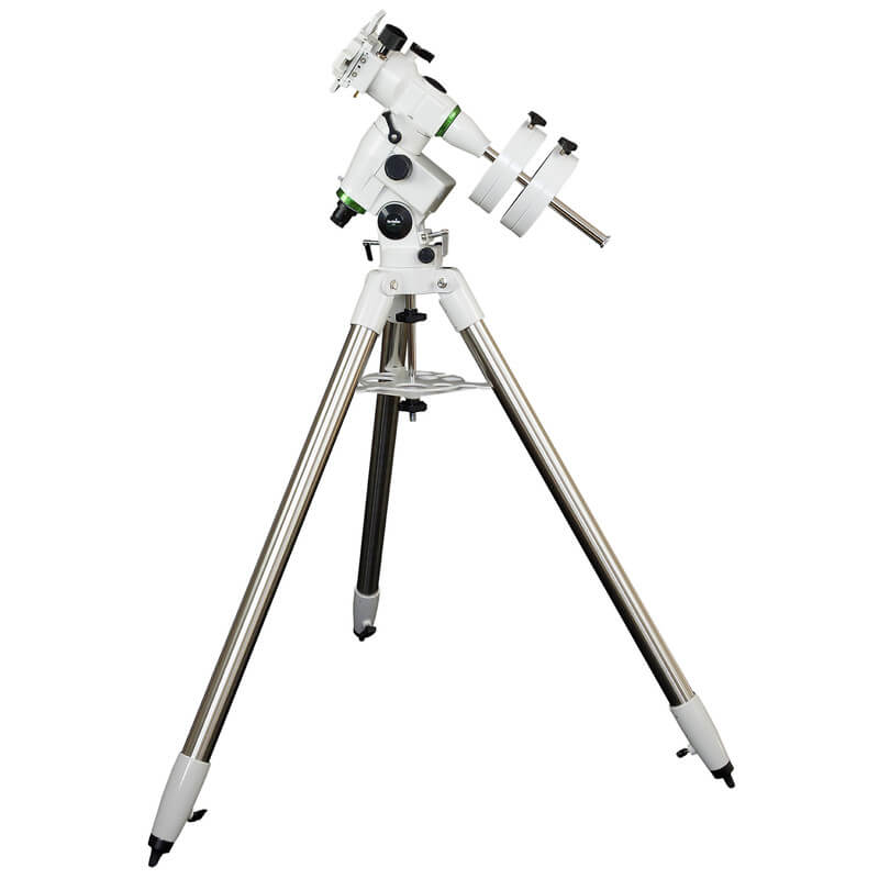 Nemecká paralaktická montáž Sky-Watcher EQ5 je robustná a stabilná rovníková montáž určená pre náročných pozorovateľov a astrofotografov. Montáž je dodávaná s oceľovým trojnožkovým statívom s nohami priemeru 44 mm, výškovo nastaviteľnými kovovými 1,75″ stojkami a polárnym hľadáčikom. Vďaka precíznym mechanizmom jemných pohybov v oboch osiach umožňuje presné navádzanie ďalekohľadu na sledovaný objekt. Súčasťou sady sú aj súradnicové kruhy a vodováha pre jednoduché nastavenie a vyrovnanie montáže.
