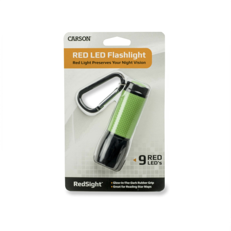 Astronomické svietidlo Carson RedSight PRO s červeným svetlom je nevyhnutné pri práci v tme. Červené svetlo nemá žiadny vplyv na prispôsobenie vašich očí na tmu, a preto sa obzvlášť hodí pri čítaní máp a ovládaní ďalekohľadu v noci.