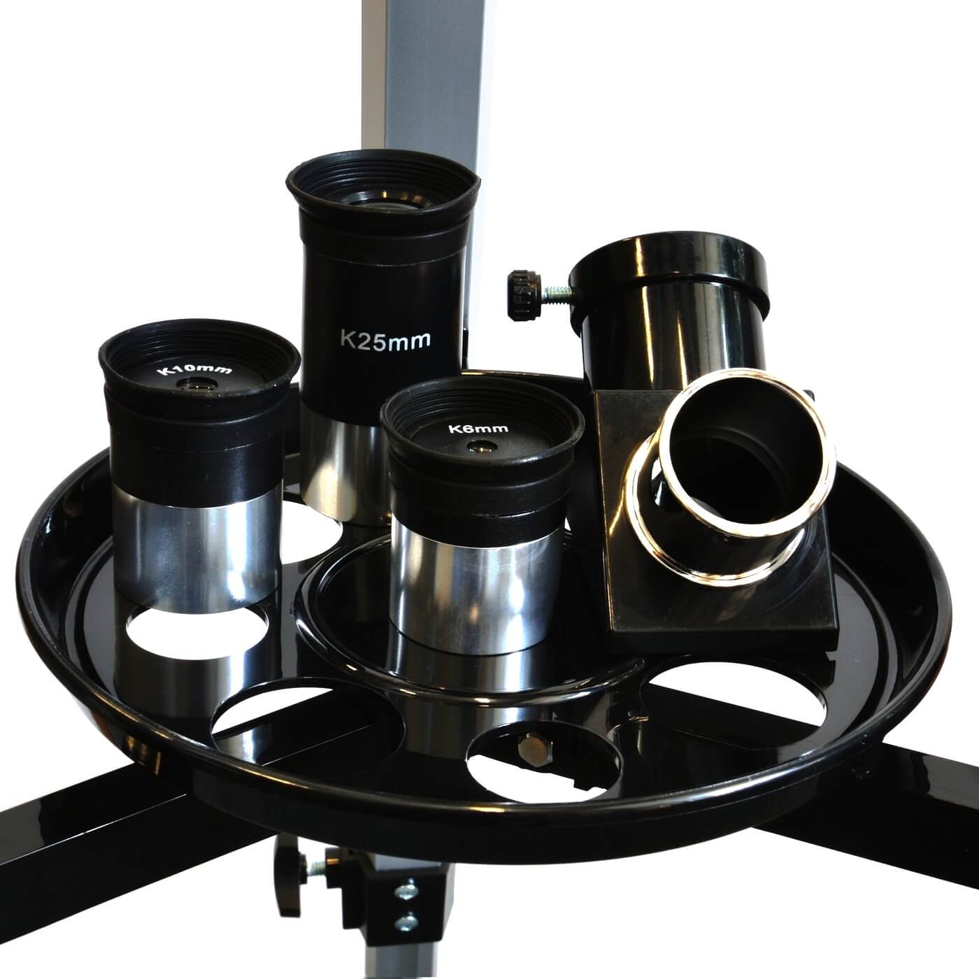 Ľahký hliníkový statív je výškovo nastaviteľný v rozsahu 80–120 cm, montáž ďalekohľadu je azimutálneho typu – teda tubus ďalekohľadu sa otáča sprava-doľava a hore-dole. Súčasťou balenia sú tri kvalitné okuláre pre zväčšenie v rozmedzí od 28-násobného do 117-násobného a optický hľadáčik ("zameriavač").