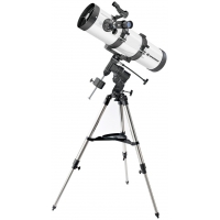 Hvězdářský dalekohled se zrcadlovým objektivem typu Newton o průměru 130mm a s ohniskovou délkou 650mm na rovníkové montáži EQ-3 na ocelovém stativu s pochromovaným povrchem.