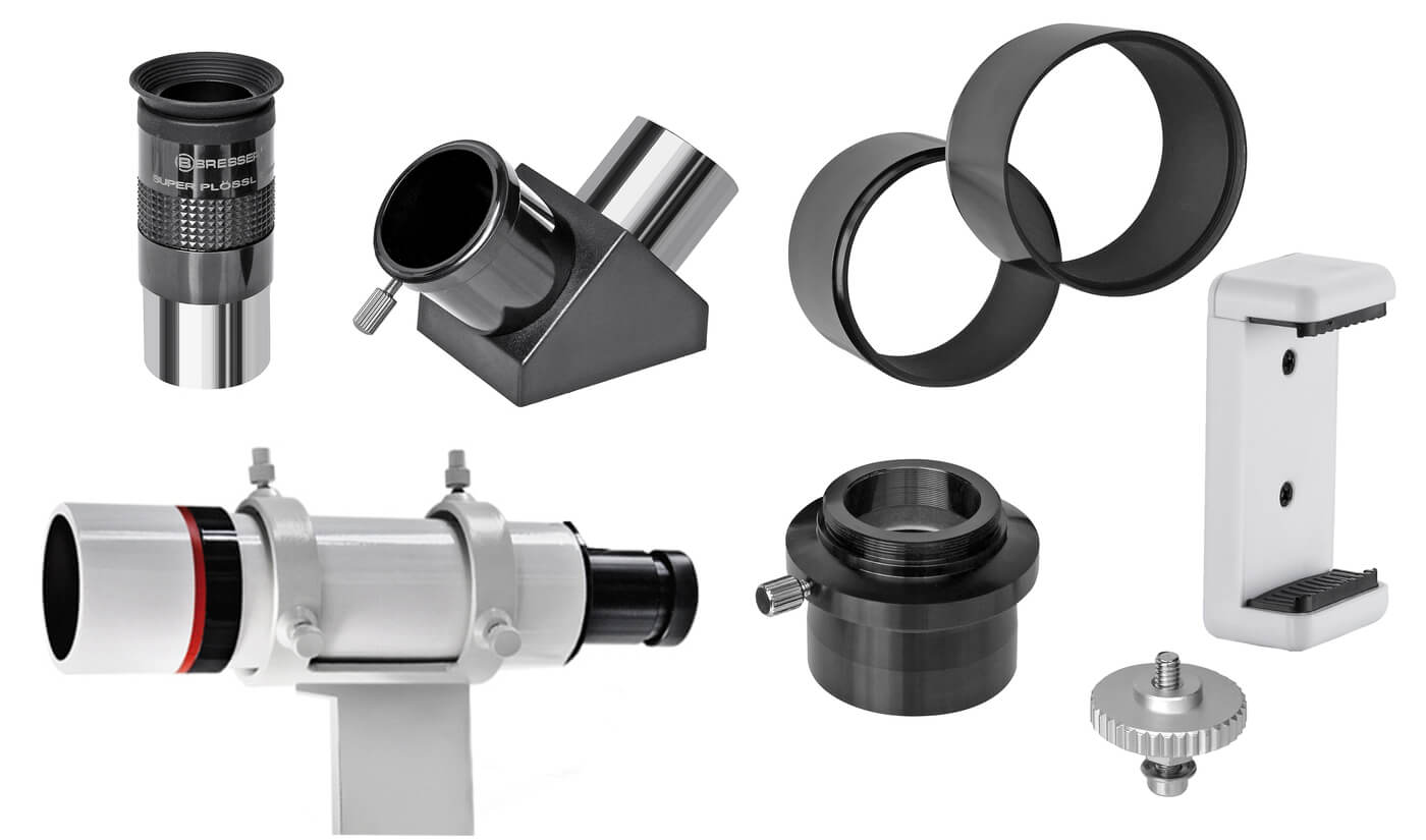 Adaptér 50,8 mm (2″) na 31,7 mm (1,25″) s integrovaným T2 závitom (potrebný voliteľný T2-adaptér pre vašu kameru)