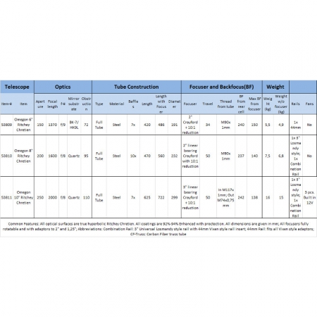 - hyperbolické zrkadlá - extrémne ostrý obraz, široké zorné pole bez potreby korektora - quartzové zrkadlá pre stabilné zaostrenie, eliminujúce nutnosť preostrovania - vysoká odrazivosť - 92-94% dielektrická reflexná vrstva pre jasné, vysoko kontrastné pozorovania a astronomické fotografie - rýchle ochladenie vďaka otvorenej konštrukcii.