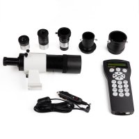 Zrkadlový ďalekohľad typu Newton 203/1000mm, 8”, svetelnosť f/5. Parabolické zrkadlo, výstup 2”, s redukciou na 1.25”. Dva okuláre Plössl 25 a 10mm (40x a 100x) so zorným poľom 50 °. Klasický hľadáčik 9x50. Ťažká nemecká rovníková computerizovaná montáž GHEQ-5 PRE SkyScan GoTo na výškovo nastaviteľnom statíve s 1.75” stojnami a odkladacou plochou na príslušenstvo. Napájanie 12V (pokojový odber min. 1.5A). Vo výbave montáže je zabudovaný polárny hľadáčik a 2 protizávažia 5.5kg.