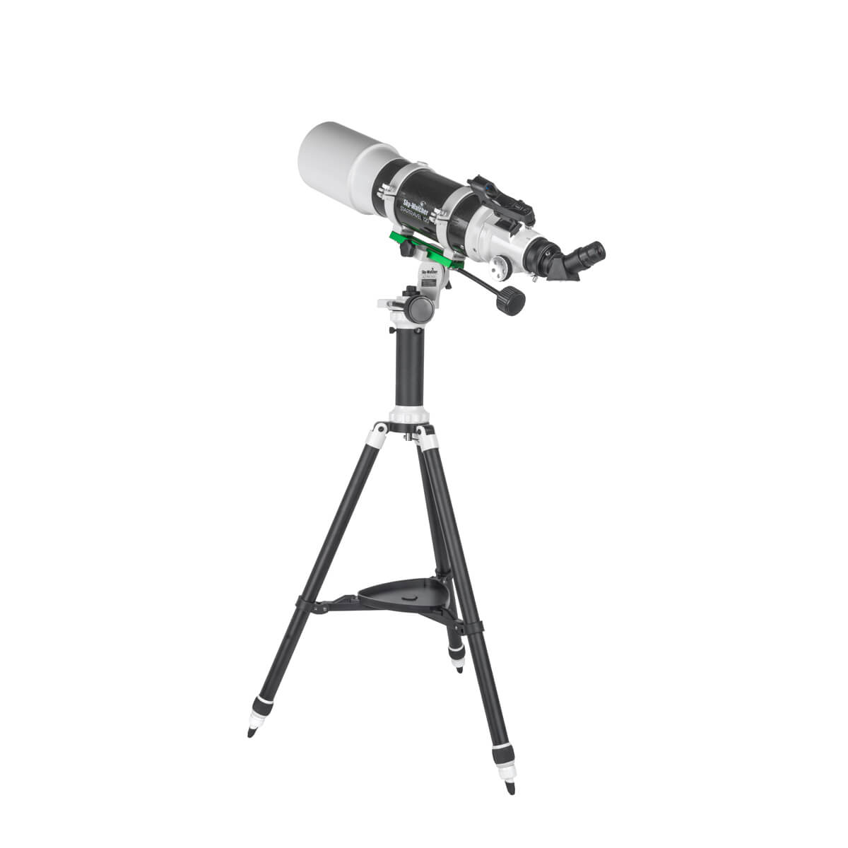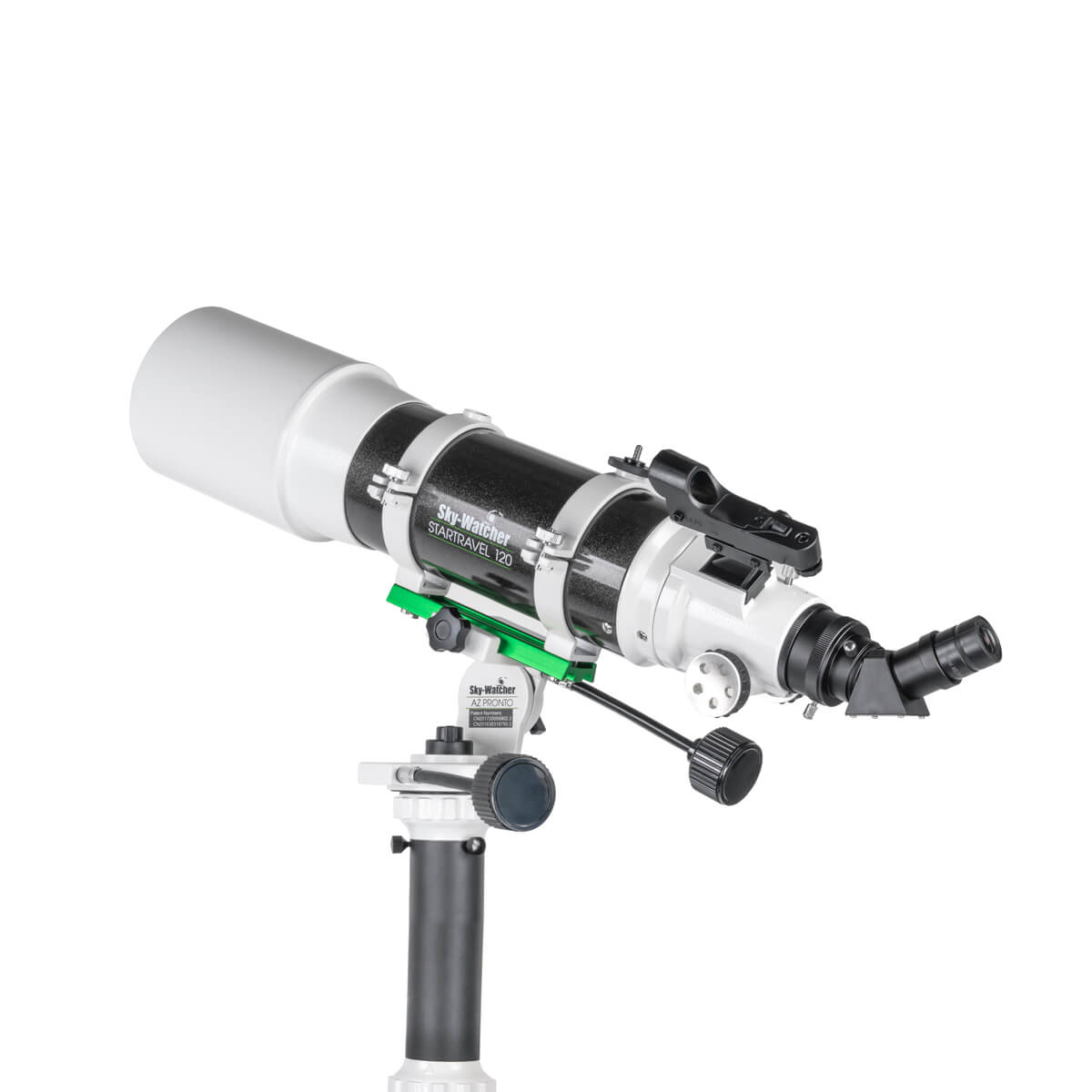 Refraktor achromatický Sky-Watcher 120/600 AZ Pronto s priemerom objektívu 120 mm a ohniskovou vzdialenosťou 600 mm. Veľká apertura vzhľadom k refraktoru a pomerne krátka ohnisková vzdialenosť umožňujú tomuto teleskopu získať veľmi široké zorné pole. Vďaka tomu je ideálnou voľbou pre tých, ktorí chcú obdivovať rozsiahle otvorené hviezdokopy, hmlovinové objekty alebo celé časti Mliečnej dráhy. Teleskop je pomerne ľahký, a jeho kompaktné rozmery zaisťujú ľahký transport aj skladovanie. Tento model je tiež vhodný pre začínajúcich pozorovateľov nočnej oblohy, pričom veľké zorné pole uľahčuje vyhľadávanie objektov na nebi.