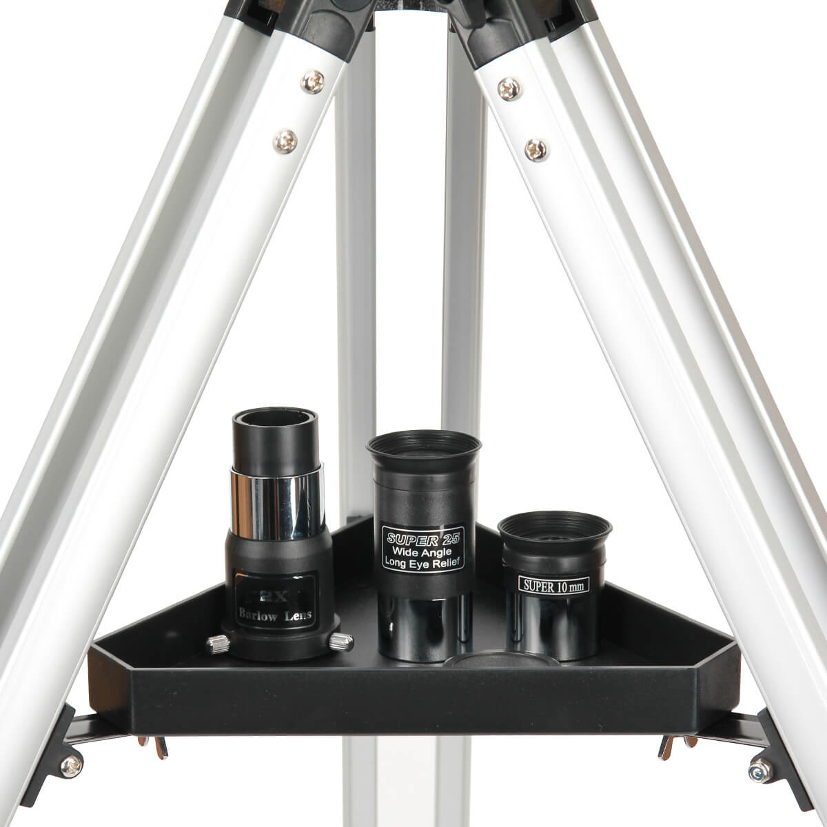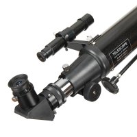 Tento klasický 70 mm refraktor Sky-Watcher 709EQ1 je ideálnou voľbou pre začiatočníkov v astronómii. Jeho vynikajúca optika, potiahnutá FMC vrstvami, umožňuje prezerať detaily povrchu Mesiaca, Saturnove prstence, disk Jupitera, jasné hviezdokopy, blízke galaxie (napr. Galaxia v Andromede) a hmloviny. Rovníková montáž EQ1, na ktorú sa ďalekohľad inštaluje, je vybavená mikrometrickými skrutkami pre hladké vedenie ďalekohľadu a ergonomickým protizávažím. Hliníkový statív je výškovo nastaviteľný od 710 mm do 1230 mm pre pohodlné pozorovanie. Vzhľadom k jeho malej veľkosti a kompaktnosti ho môžu aj skúsenejší pozorovatelia používať ako prenosnú variantu. Refraktor f/13, 70/900 mm na nemeckej rovníkovej montáži, dvojčočkový achromatický objektív, výstup 1,25″, Zenitový hranol 90° (obraz vzpriamený, ale stranovo obrátený), okuláre s ohniskami 25 mm (22.5x) a 10 mm (90x), okulár. výťah osadený T2 závitom na pripojenie fotoaparátu, hľadáčik 6 x 30. Paralaktická montáž umožňuje jednoduchšie pozorovanie nebeských objektov - po správnom zriadení a prípadnom doplnení "hodinového" strojčeka automaticky sleduje nastavený objekt. Na deklinačnej ose je jemný pohyb bez prestavenia v rozsahu cca 40°. Obsahuje kovové upínacie kruhy sa statívovým závitom 1/4" na hornej časti.