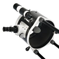Newton 254/1200mm, parabolické primární zrcadlo o průměru 254mm (10”) splňující minimálně přesnost lambda/8, sekundární zrcátko s osou 58mm (zastínění cca 23%), světelnost f/4.7. Dobsonova azimutální montáž s valivými ložisky v obou osách a brzdou v elevaci. Inovovaný tubus zasouvací s fixací třemi šrouby (snažší přeprava a skladování). Přímý hledáček 8x50, okulárový výtah typu Crayford, výstup 2”, redukce na 1.25”. Hmotnost tubusu 12.5 kg, hmotnost základny 15kg.